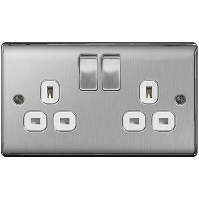 (0)SaleFree 30 Year warrantyBG Nexus Metal Brushed Steel Double Switched 13A Power Socket - White Insert - NBS22W